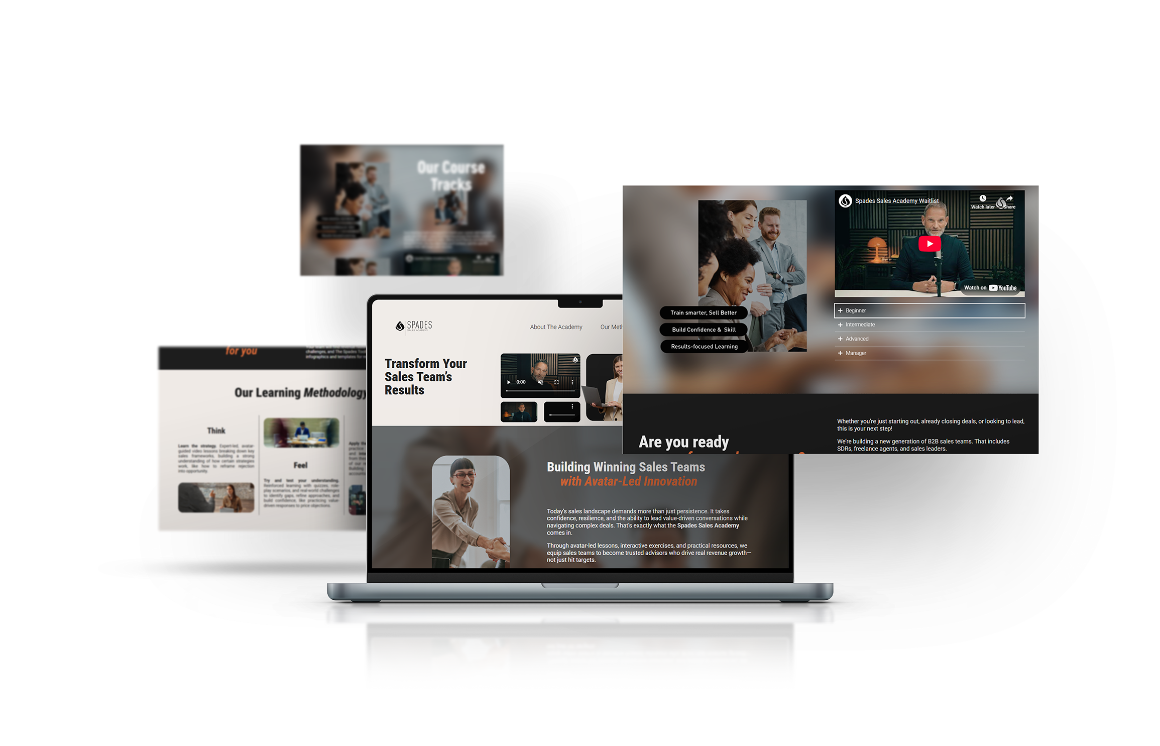 We partnered with Spades Sales Academy to build the full digital and brand experience from the ground up. This included the design and development of their website, the full suite of academy videos, branded materials such as workbooks and downloadable resources, and a ScoreApp-powered waitlist landing page. Every element was crafted to balance clarity with innovation—showcasing the founder’s deep expertise while keeping the learning experience streamlined and engaging.
